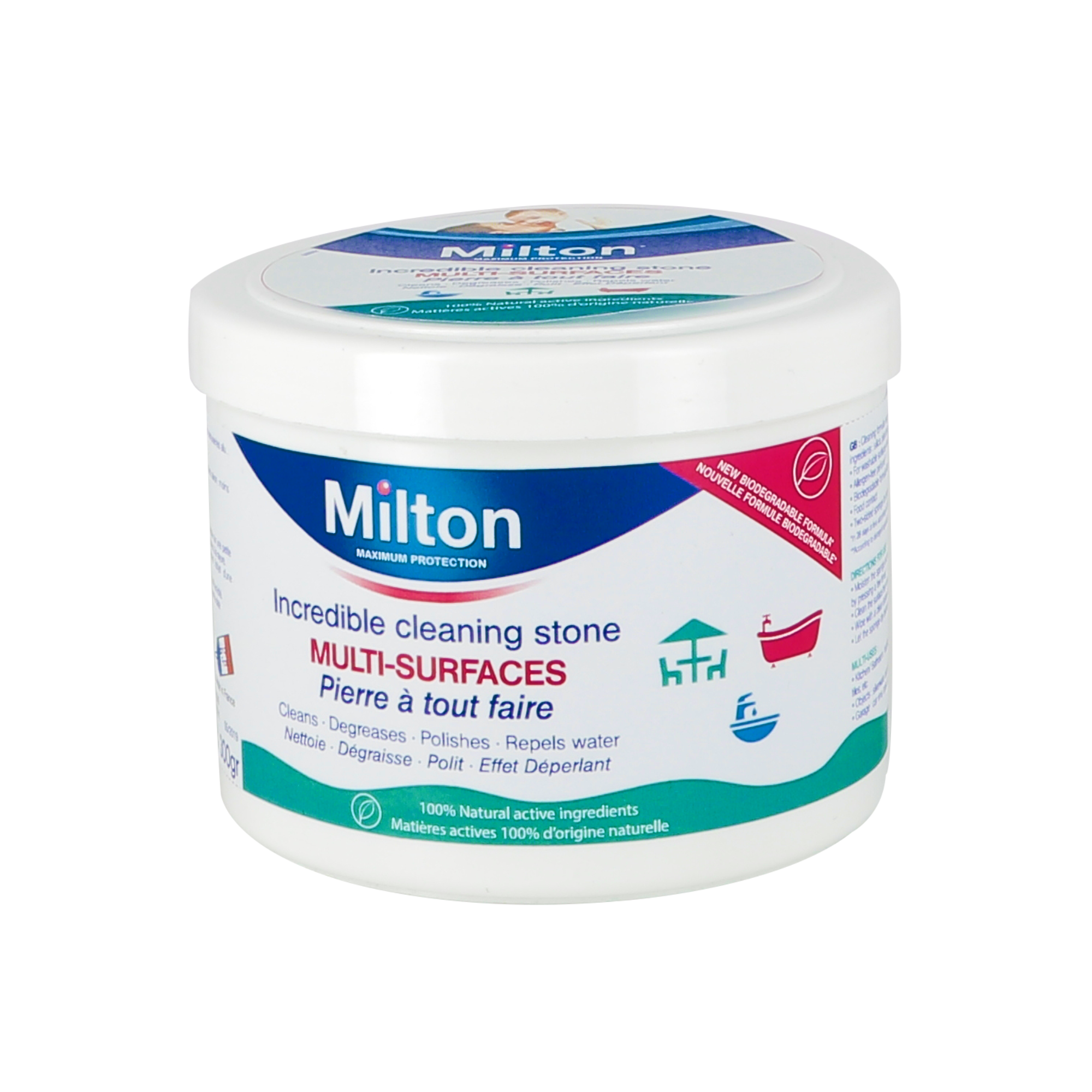 Cleaning formula made from 100% natural active ingredients: silica, plant-based oils, coconut: