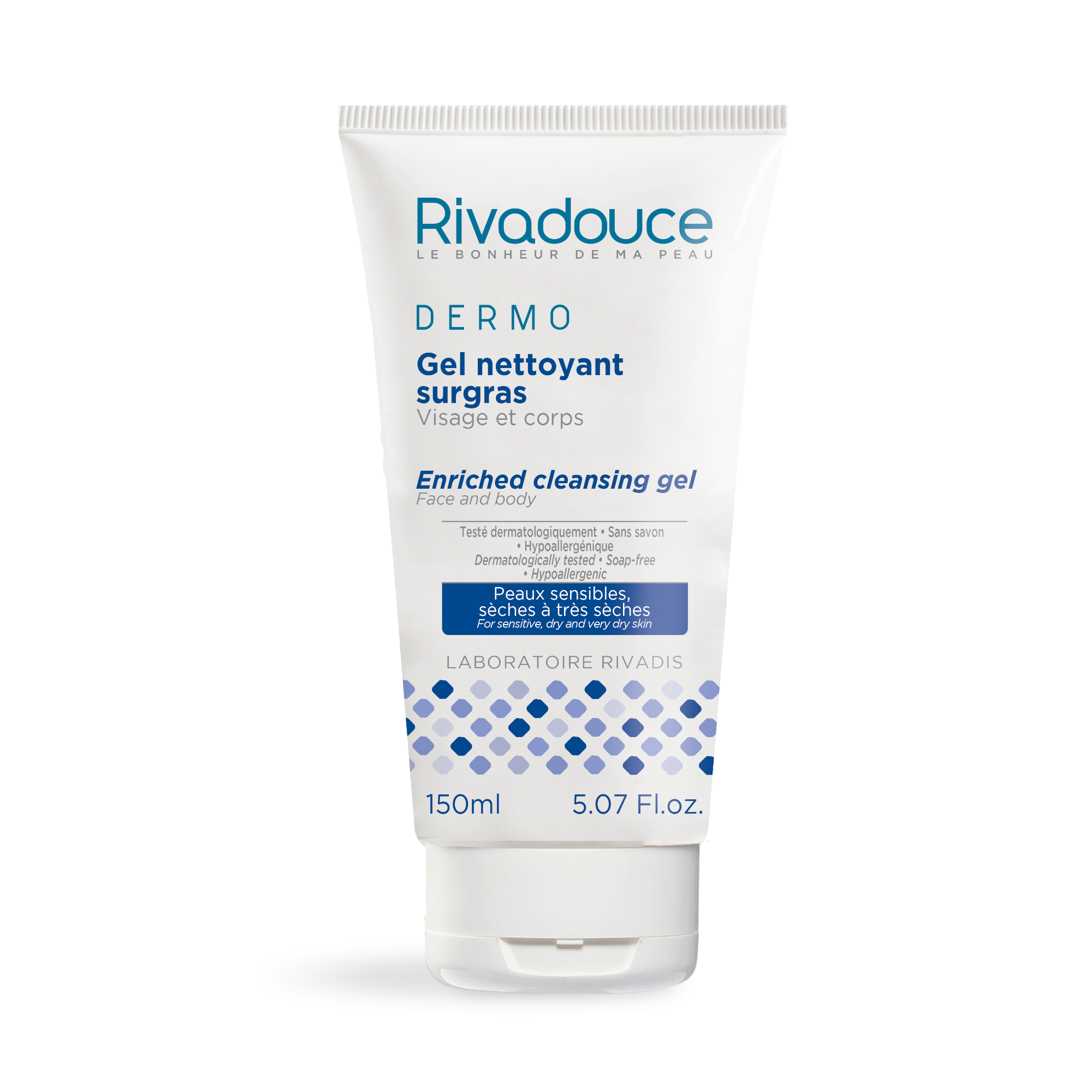 Rivadouce Dermo Enriched Cleansing Gel (Gel Nettoyante Surgras) is suitable for dry to very dry skin. This soap-free gel gently cleanses the skin, moisturises and preserves the sensation of tightness. Its creamy gel texture is delicately scented and easy to rinse, leaving the skin soft and comfortable. Hypoallergenic. Dermatologist tested. Alcohol-free. No Parabens. No Phenoxyethanol. No Colouring. Suitable for adults only.