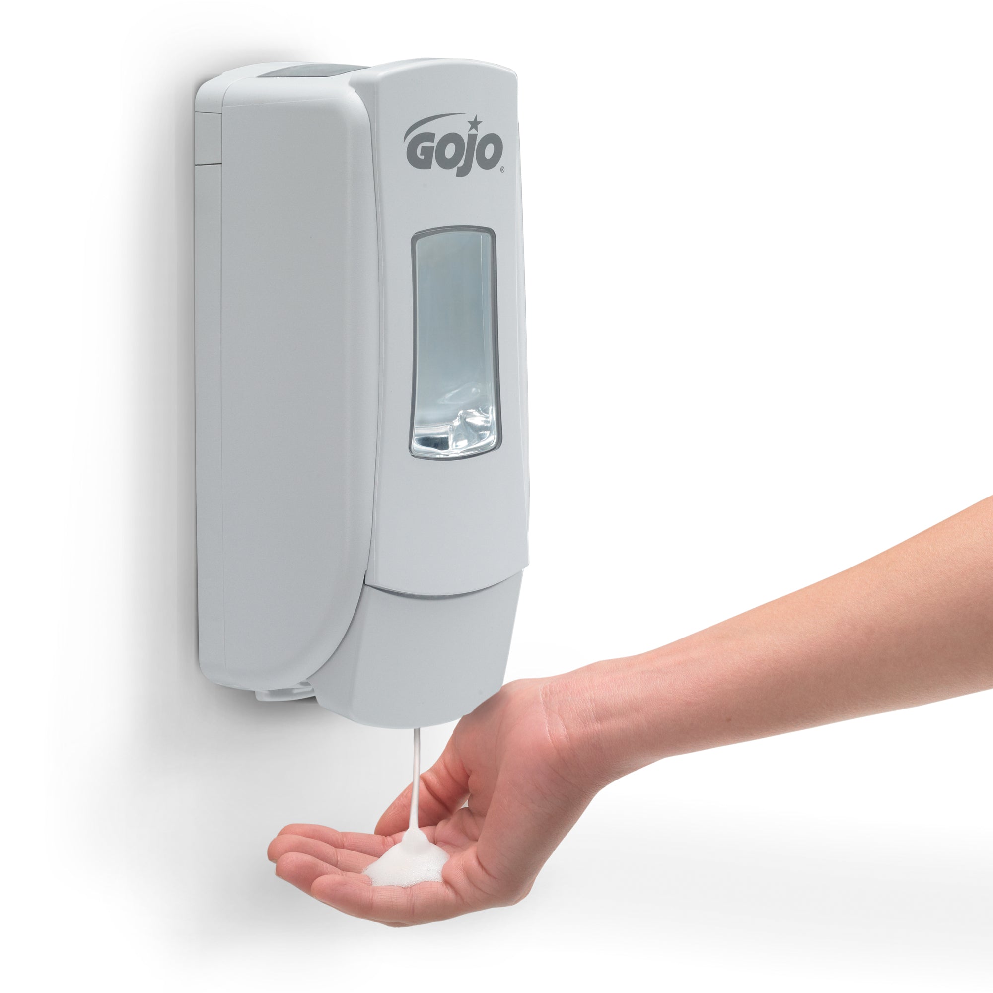 Includes 1 Dispenser (Available in White, Grey/White and Brushed Chrome) + 2 Refills of GOJO Citrus Ginger Foam Hand & Showerwash (700ml each)